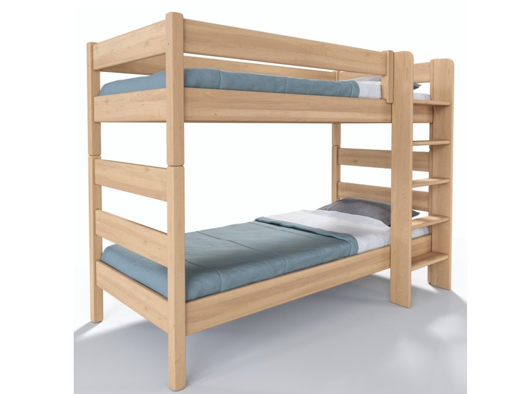 Model Junior 1 z masívneho buka je dokonalým riešením pre súrodencov či deti v jednej izbe. Spája poctivé slovenské spracovanie, vysokú nosnosť a prirodzene elegantný vzhľad, ktorý zapadne do každého interiéru.