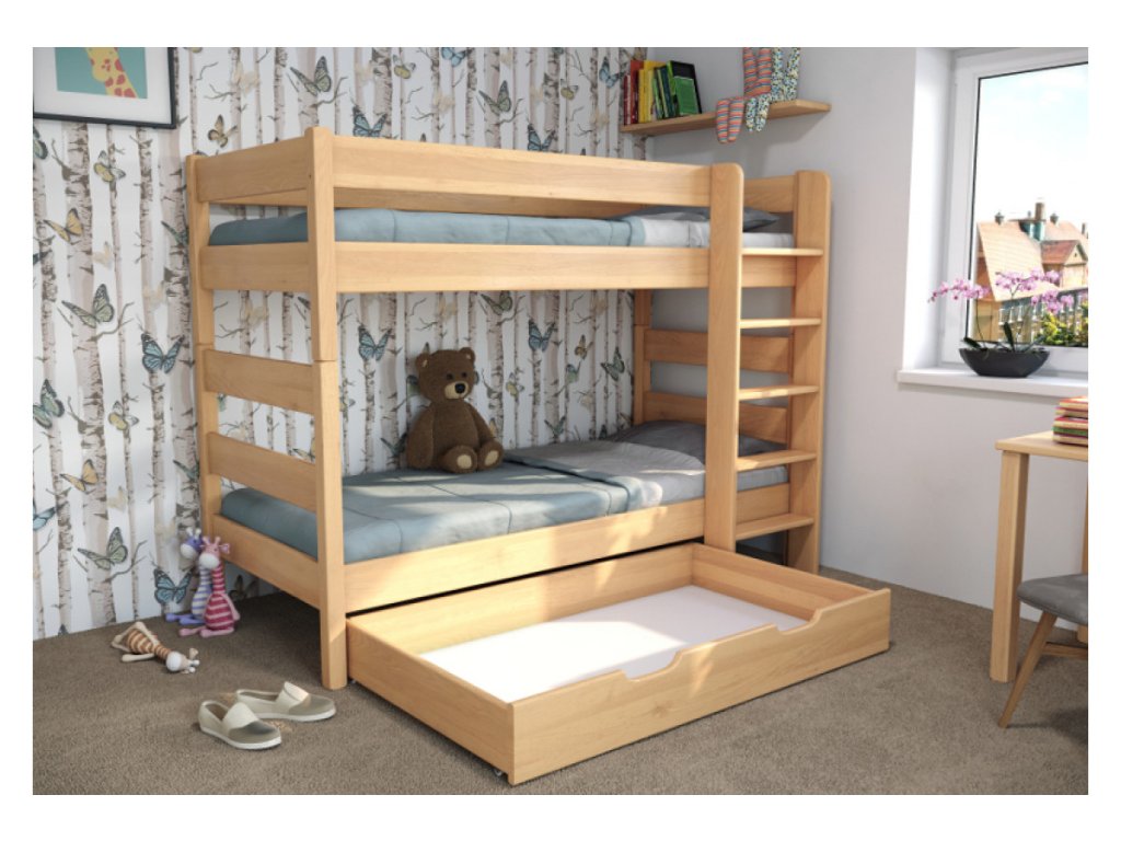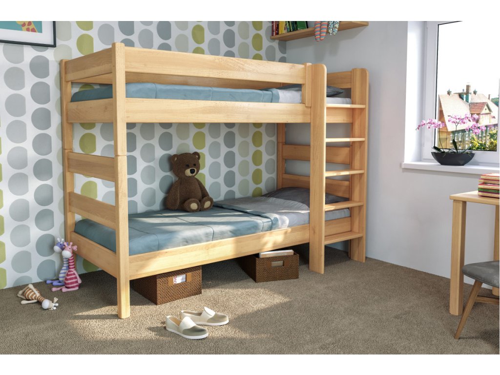 Buková poschodová posteľ JUNIOR 1 – pevná, bezpečná a ideálna pre detské izby