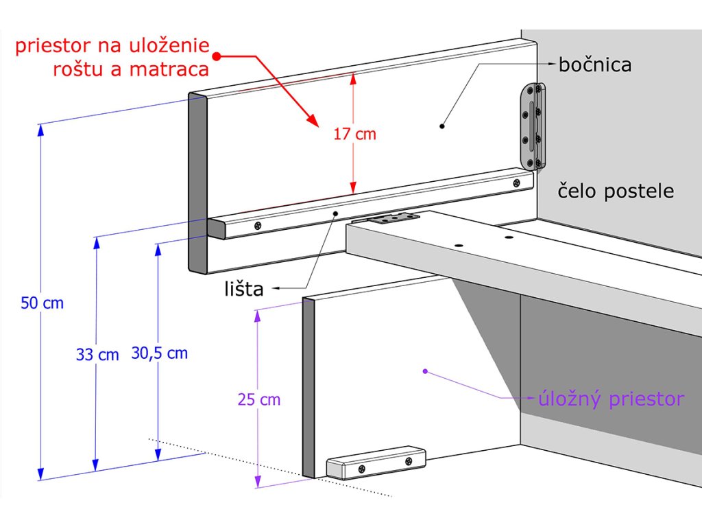 Vnútorný rozmer: 200 × 120 / 140 / 160 / 180 / 200 cm