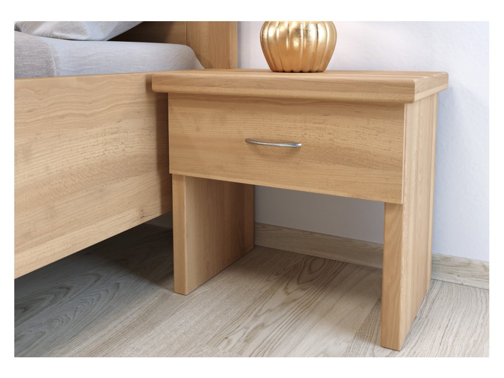 Nočný stolík Perla je vyrobený z masívneho bukového dreva, ktoré zaručuje vysokú pevnosť, stabilitu a dlhú životnosť. Povrchová úprava je riešená ekologickým vodou riediteľným lakom, pričom si môžete zvoliť aj farebné morenie podľa vzorkovníka – aby stolík dokonale zapadol do vašej spálne.