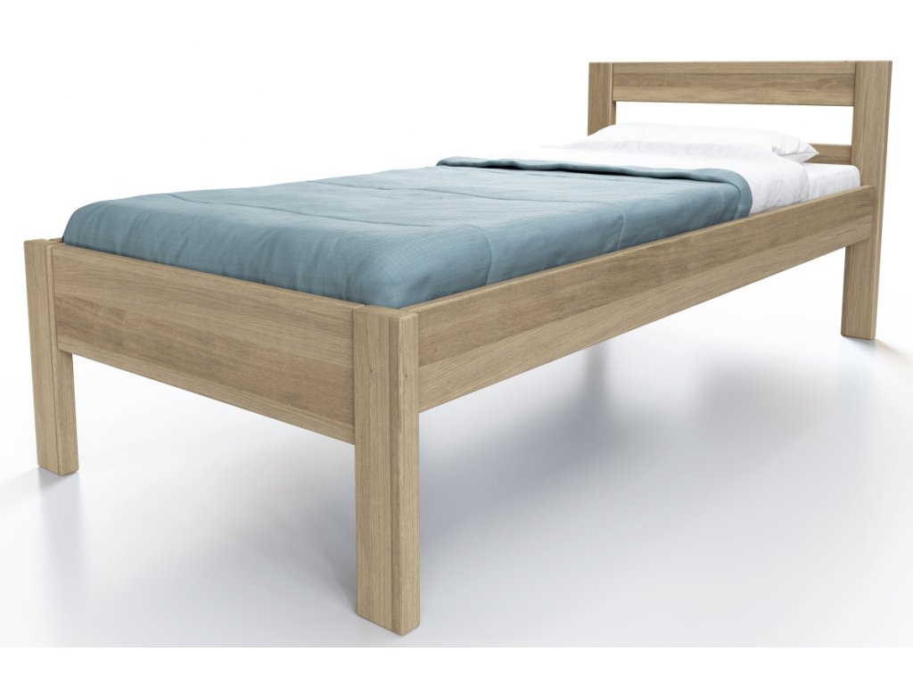 Posteľ Tina je vyrobená z masívneho dubového dreva v priebežnom prevedení (nie v parketovom – cinkovanom prevedení).