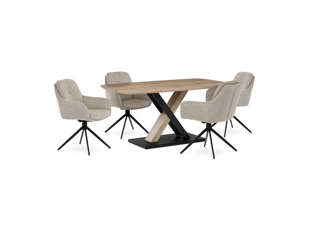 Stabilitu a pevnosť zabezpečuje centrálna podnož v kombinácii kovu a MDF, ktorá zároveň podčiarkuje moderný dizajn celého stola.