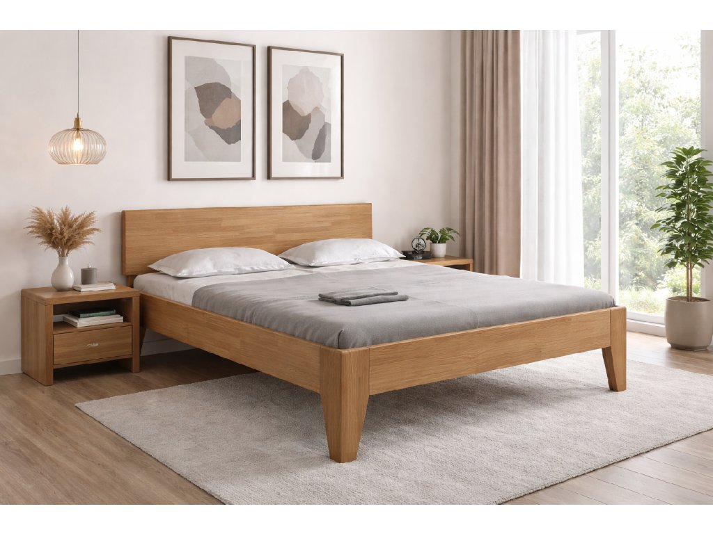 Dizajnová, masívna posteľ vyrobená z masívu BUK s hrúbkou materiálu 3 cm.