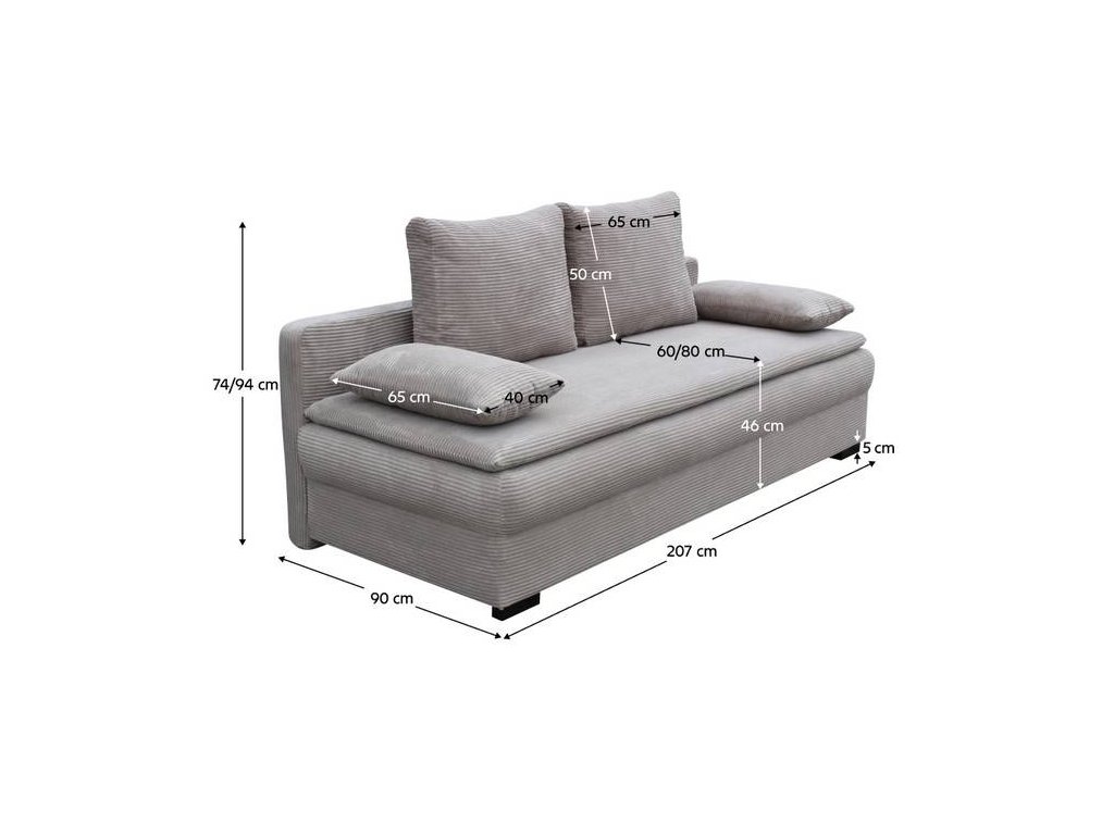 Pod sedacou časťou sa nachádza priestranný úložný priestor, ideálny na uloženie posteľnej bielizne, vankúšov, diek, hračiek či iných potrebných vecí.