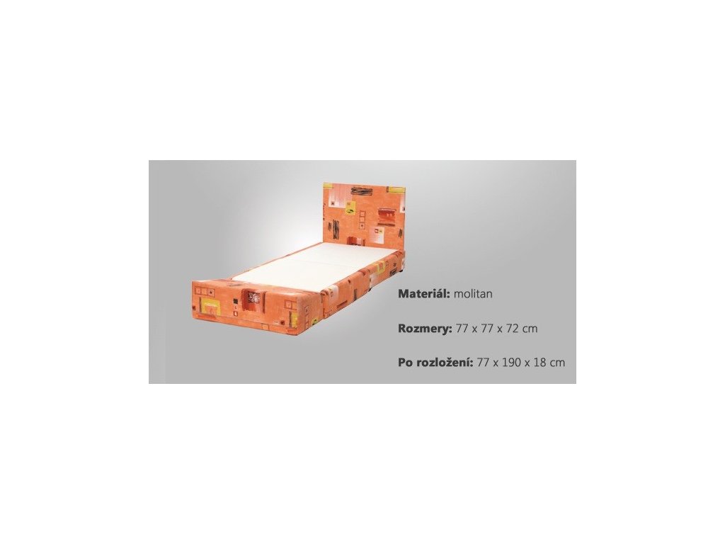 rozmery: 77 x 77 x 72 cm, plocha na spanie: 77 x 190 x 18 cm