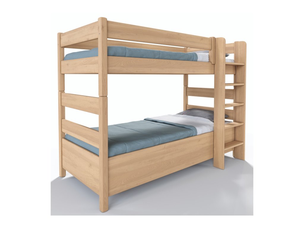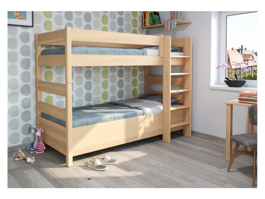 Buková poschodová posteľ JUNIOR 10 – masív, úložný priestor a flexibilné riešenie