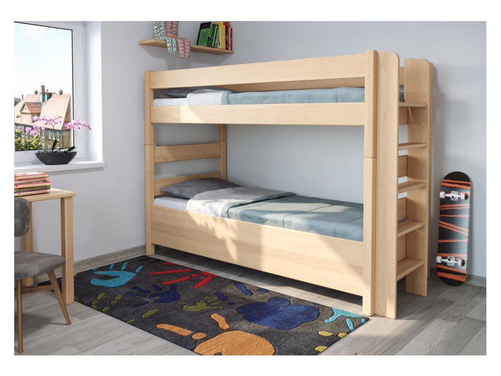 Buková poschodová posteľ JUNIOR 12 – pevný masív s praktickým úložným priestorom
